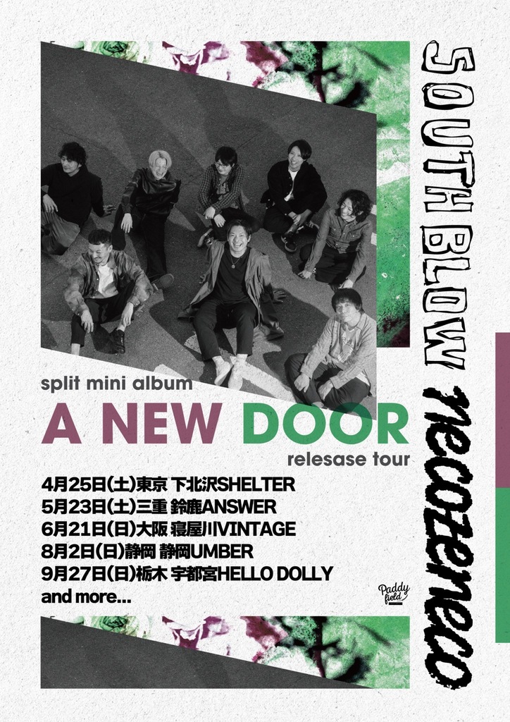 投稿日: 投稿者: SOUTH BLOW OFFICIAL2026.08.02.Sun.【split tour】静岡UMBER SOUTH BLOW × necozeneco presentssplit mini album “A NEW DOOR” release tour 詳細後日発表!